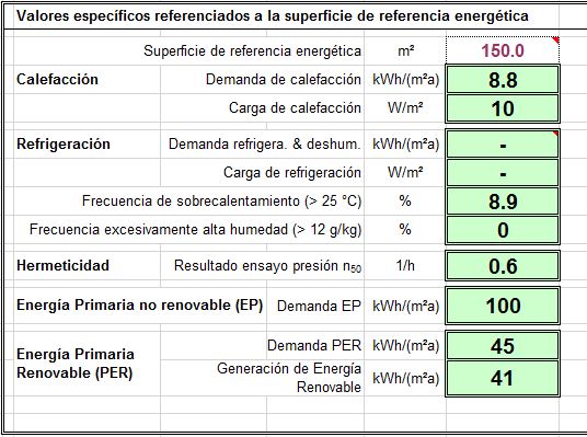 - Demanda de calefacción. La energia necesaria para calentar la casa 8.8Kwh/m2 al año